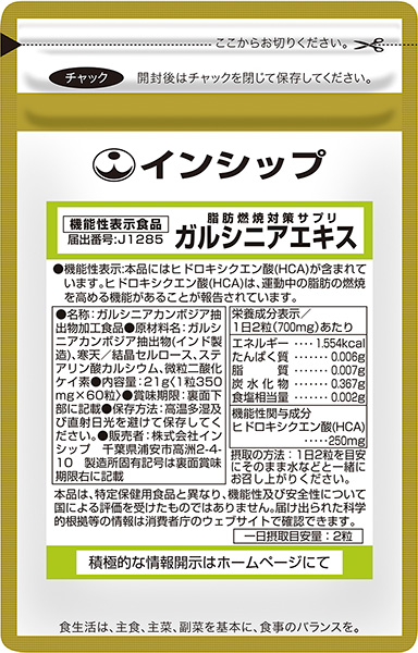 健康食品製造・販売の株式会社インシップ(本社:千葉県浦安市、代表取締役社長:小野伸二郎)は、消費者庁に届出をし、「脂肪燃焼対策サプリ(ガルシニアエキス)」が機能性表示食品として受理されました。3月25日に新発売いたします。